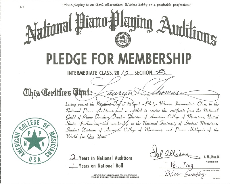 ACM Piano Audition Certificate